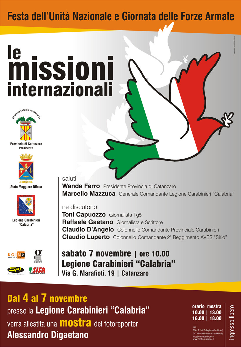 Grandi Eventi Giornata Forze Armate 2009 le missioni internazionali 09 Novembre 2009 Legione Carabinieri “Calabria” Via G. Marafioti, 19 – Catanzaro - ore 10.00 Condividi su: